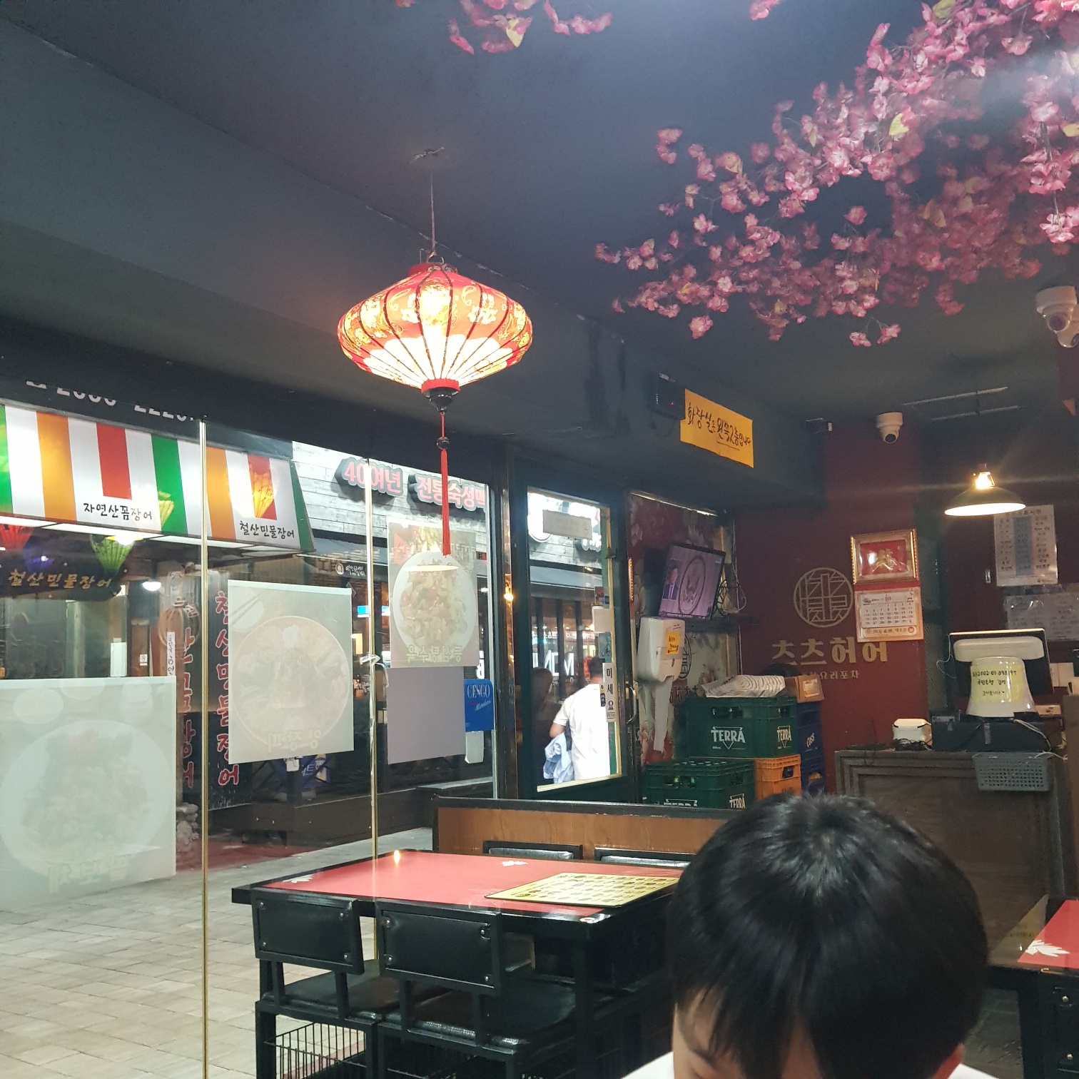 매장 안에는 매화꽃인가요? 중국풍으로 인테리어를 해놓은 것 같았어요.